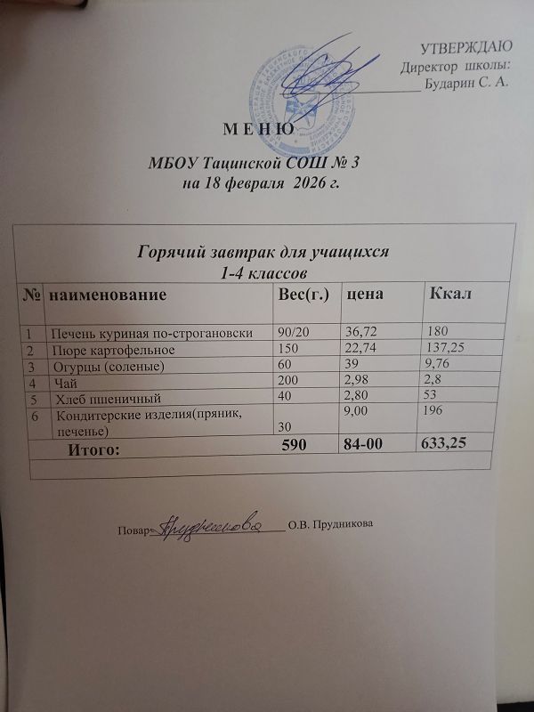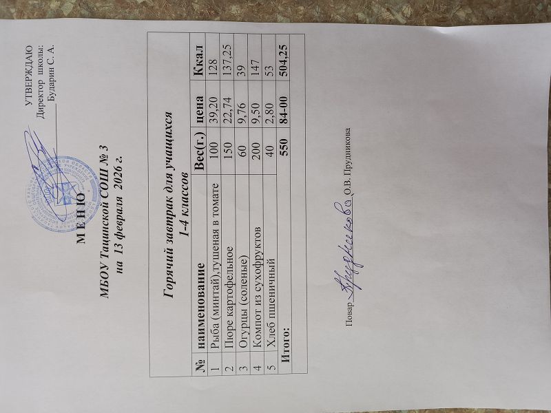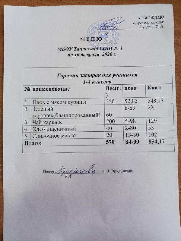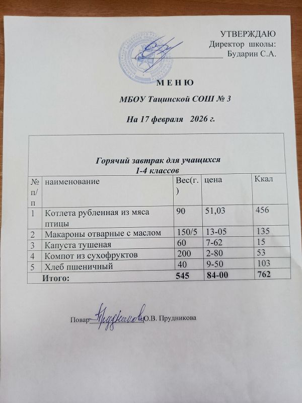 Меню ежедневного горячего питания