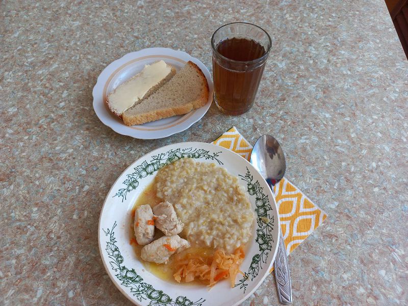 Сегодня 06.10.25 для учащихся 1-4-х классов предусмотрено следующее меню на завтрак: плов с мясом курицы, зеленый горошек, чай каркаде, хлеб пшеничный, сливочное масло.