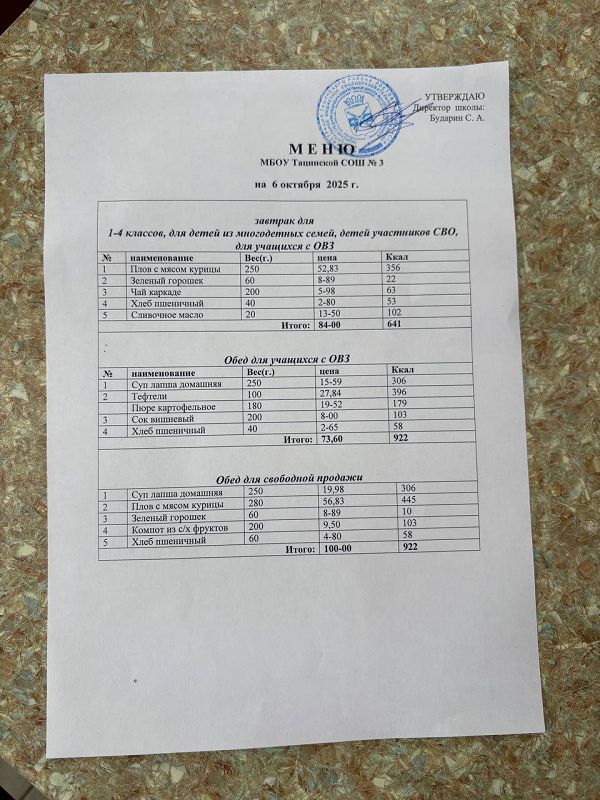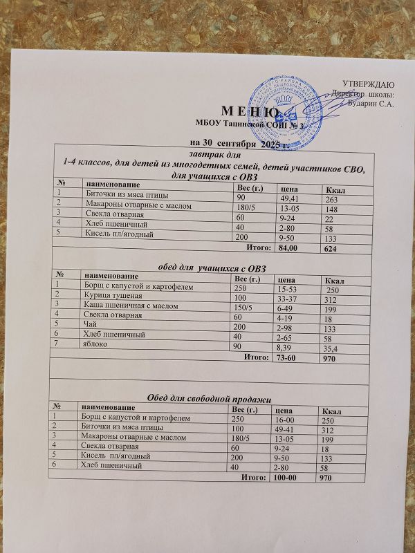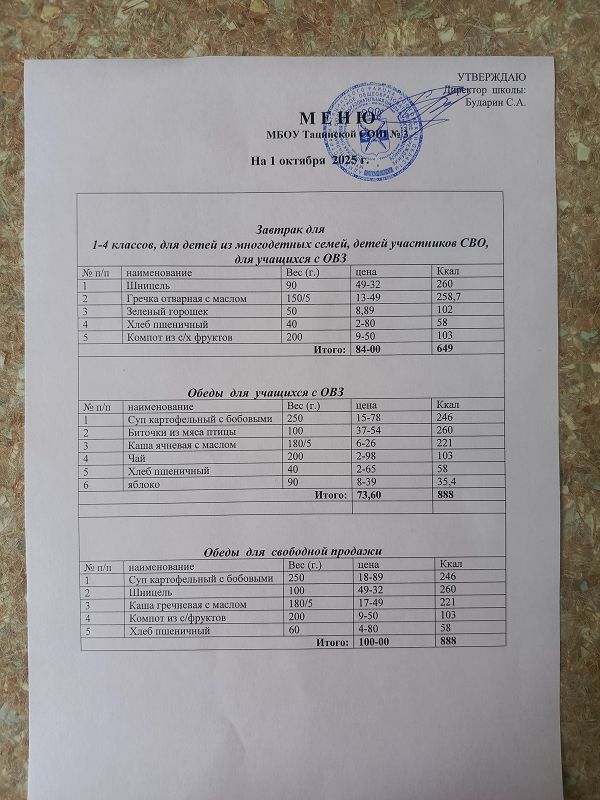 Сегодня 02.10.2025 г. для учащихся 1 – 4 классов ТСОШ №3 предусмотрено следующее меню на завтрак: бефстроганов, макароны отварные с маслом, свекла отварная, хлеб пшеничный, кофейный напиток.