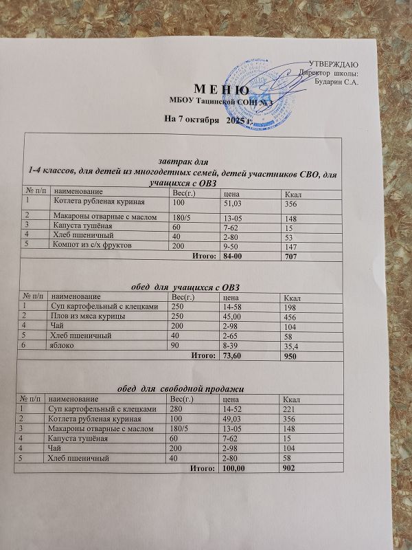 Сегодня 07.10.25 для учащихся 1-4-х классов предусмотрено следующее меню на завтрак: котлета рубленая куриная, макароны отварные с маслом, капуста тушеная, хлеб пшеничный, компот из с/х фруктов.