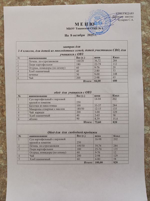 Сегодня 08.10.25 для учащихся 1-4-х классов предусмотрено следующее меню на завтрак: печень по-строгановски, пюре картофельное, огурцы, помидоры (по сезону), хлеб пшеничный, печенье, чай.
