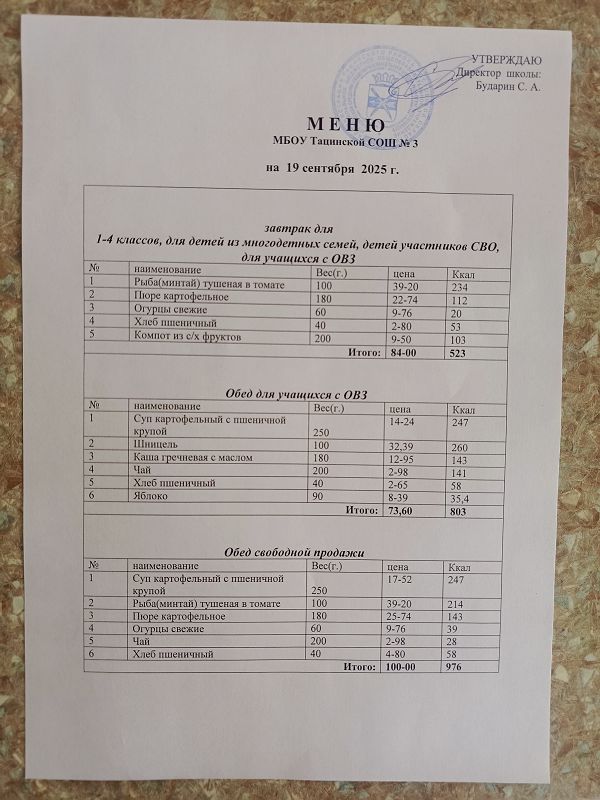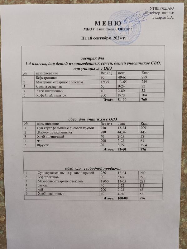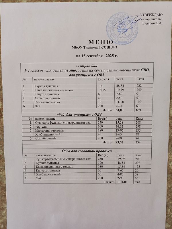 Сегодня 18. 09. 2025 г. для учащихся 1 – 4 классов ТСОШ №3 предусмотрено следующее меню на завтрак: бефстроганов, макароны отварные с маслом, свекла отварная, хлеб пшеничный, кофейный напиток.