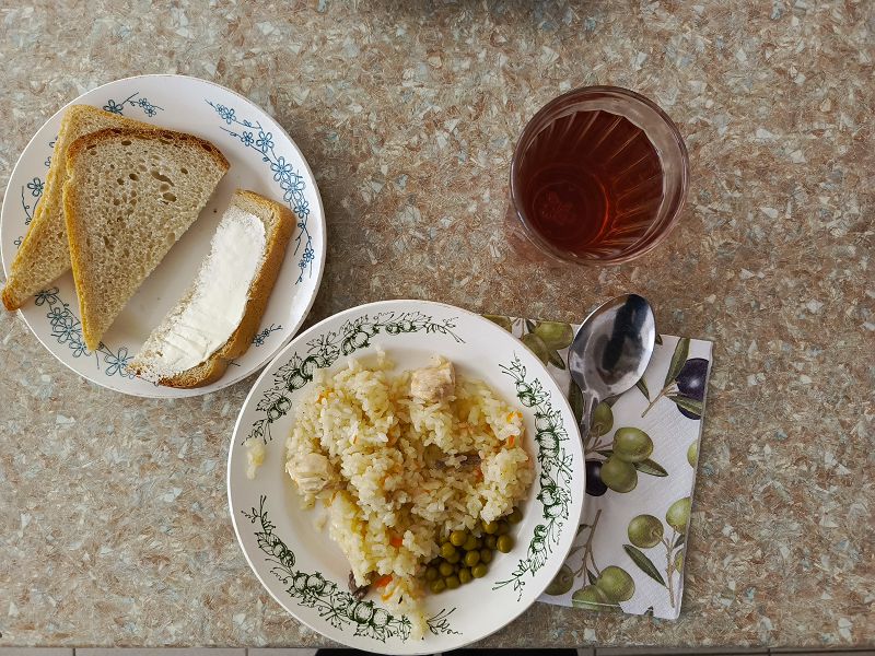 Сегодня 22.09.25 для учащихся 1-4-х классов предусмотрено следующее меню на завтрак: плов с мясом курицы, зеленый горошек, чай каркаде, хлеб пшеничный, сливочное масло.