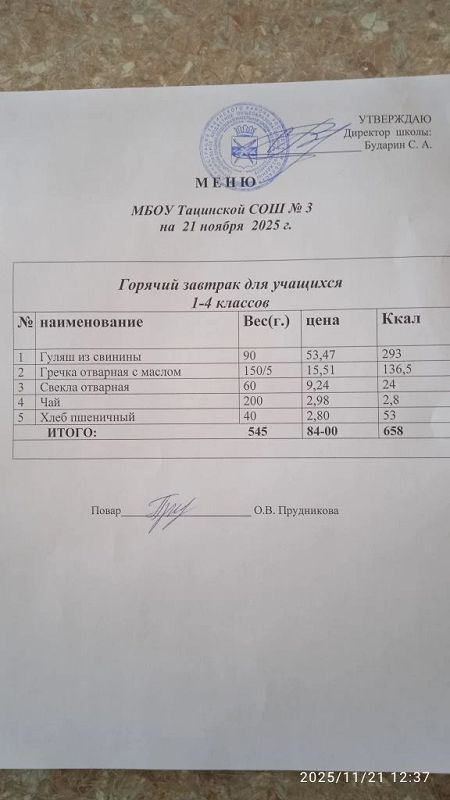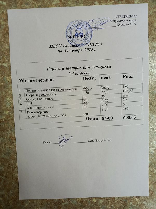 Сегодня 19.11.25 для учащихся 1-4-х классов предусмотрено следующее меню на завтрак: печень по-строгановски, пюре картофельное, огурцы, помидоры (по сезону), хлеб пшеничный, печенье, чай.