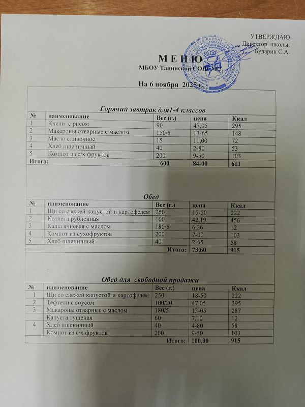 Сегодня 06.11.2025 г. для учащихся 1 – 4 классов предусмотрено следующее меню на завтрак: кнели куриные с рисом, макароны отварные с маслом, масло сливочное, хлеб пшеничный, компот из с/х фруктов.