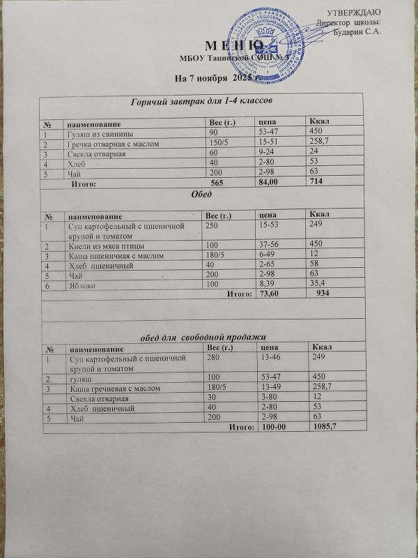Сегодня, 07.11.2025 г. для учащихся 1 – 4 классов предусмотрено следующее меню на завтрак: гуляш из свинины, гречка отварная с маслом, свекла отварная, хлеб, чай.