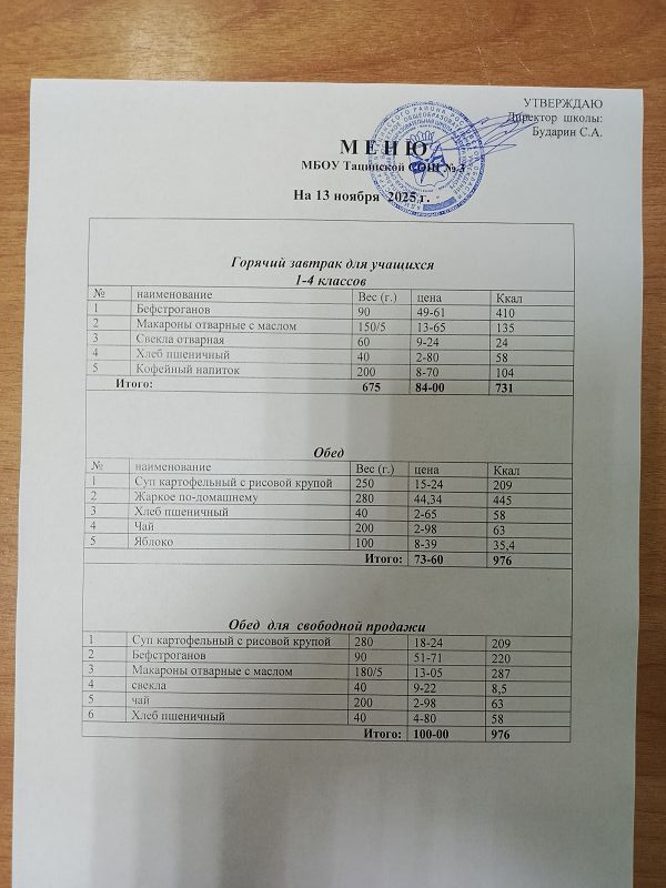 Сегодня на 13.11.2025 г. для учащихся 1-4 класса ТСОШ №3 предусмотрено следующее меню на завтрак: бефстроганов, макароны отварные с маслом, свекла отварная, хлеб пшеничный, кофейный напиток