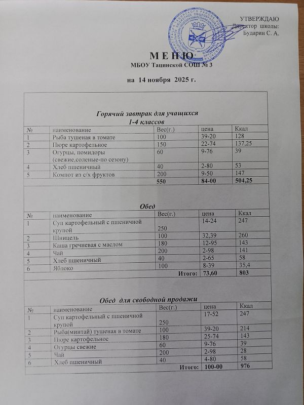 Сегодня 14.11.25 для учащихся 1-4-х классов предусмотрено следующее меню на завтрак: рвба тушеная в томате, пюре картофельное, огурцы, помидоры (свежие или соленые), хлеб пшеничный, компот из сухофруктов.