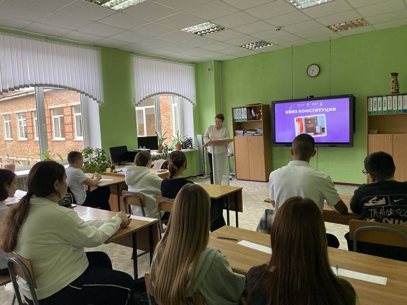 Ребята собрались, чтобы вместе узнать о главном законе нашей страны — Конституции Российской Федерации. На мероприятии присутствовал директор школы Бударин Сергей Александрович.