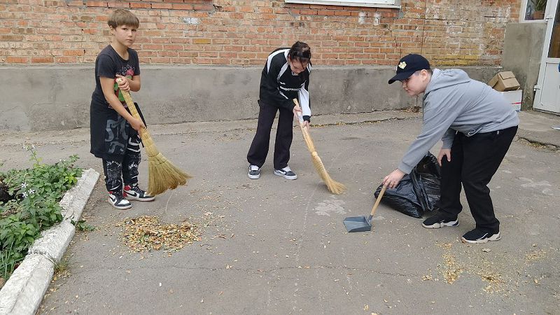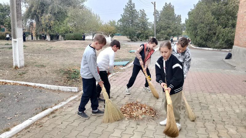 - Очистили территорию: Мы прошлись по всем уголкам школьного двора, собирая мусор, опавшие листья и ветки. Каждый уголок стал заметно опрятнее!