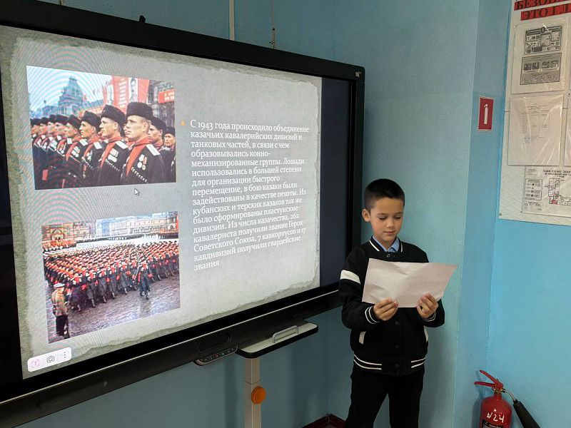 20 ноября с учащимися школы был проведён единый классный час «445 лет – служению Донских казаков Российскому Государству», посвященный этому событию. У выставки в школьной библиотеке и в классах были проведены беседы, презентации о донских казаках, служивших Отчизне в разные годы. Ребята немало узнали интересного из истории казачества.
