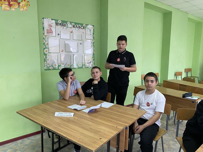 20 ноября советник директора по воспитанию Светлана Юрьевна Агеева совместно с учителем обществознания Татьяной Александровной Васильевой провели второе занятие из цикла «Я и государство» в рамках регионального проекта «Молодежь вправе». Ребята стали участниками правовой игры «Политик будущего», в ходе которой проанализировали проблемы в соответствии «своего министерства» и предложили пути решения, опираясь на законы нашего государства.