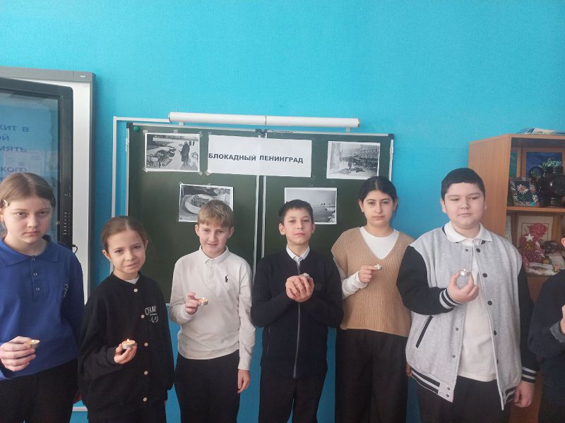 За своё освобождение Ленинград заплатил дорогой ценой. 650 тысяч ленинградцев погибло от голода. Более 500 тысяч солдат погибли под Ленинградом. 27 января 1944г блокада Ленинграда окончательно снята. Память погибших учащиеся почтили минутой молчания.