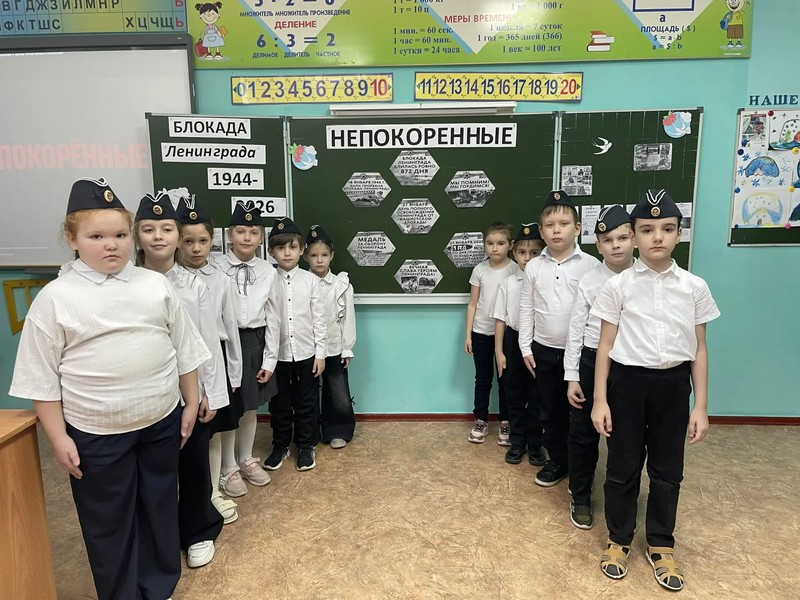 26 января в 1 классе был проведен классный час на тему «Блокадный Ленинград». Татьяна Сергеевна Литвинец рассказала ребятам о «Дороге жизни» через Ладожское озеро, показала маленький кусочек хлеба, который являлся для ленинградцев единственным источником жизни. Учащиеся узнали, что даже не смотря на голод и холод ленинградцы не унывали, дети продолжали учиться в школе.