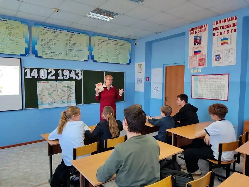 17 февраля состоялся классный час с учащимися 7а, б классов на тему: «День Ростовской победы!», посвященный освобождению г. Ростова–на–Дону от немецких захватчиков. Педагог – библиотекарь Отраднова К.Г. и классные руководители Майорова С.В. и Гринева Т.В. рассказали хронологию освобождения г. Ростова-на–Дону. Ребята посмотрели видеофильм о храбрости и самоотверженности защитников города.
