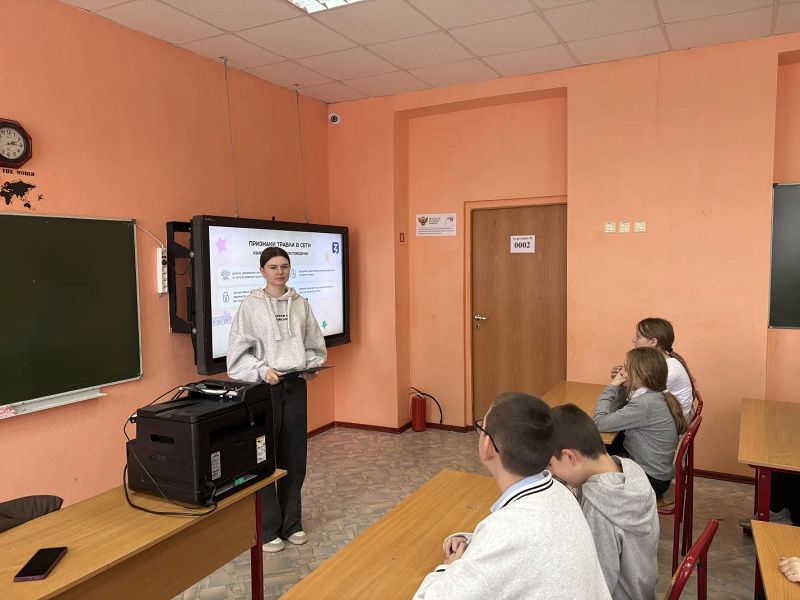 Для учеников 5–6 классов была проведена лекция на тему «Подросток в соцсетях: как избежать мошенников и кибербуллинга?». Лекцию провела Женова Кристина Андреевна. Ребята узнали о распространённых схемах интернет‑мошенничества, признаках кибербуллинга, правилах безопасного поведения в социальных сетях и способах защиты личных данных.