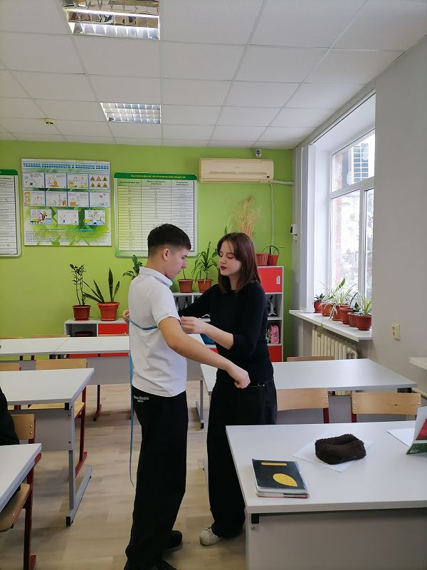 24 декабря в 9 классах прошла практическая работа по биологии. Ученики осваивали методику измерения обхвата грудной клетки в состоянии вдоха и выдоха. Это исследование помогает не только развить навыки точных измерений, но и лучше понять физиологические процессы, связанные с дыханием, и оценить индивидуальные особенности организма.