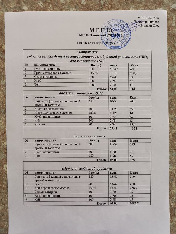 Сегодня, 26.09.2025 г. для учащихся 1 – 4 классов предусмотрено следующее меню на завтрак: гуляш из свинины, гречка отварная с маслом, свекла отварная, хлеб, чай.