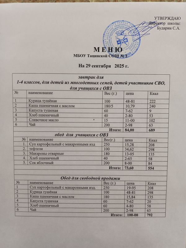 Сегодня 29.09.25 для учащихся 1-4-х классов предусмотрено следующее меню на завтрак: курица тушеная, каша пшеничная с маслом, капуста тушеная, хлеб пшеничный, сливочное масло, чай.