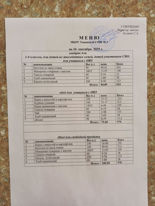 Сегодня 18. 09. 2025 г. для учащихся 1 – 4 классов ТСОШ №3 предусмотрено следующее меню на завтрак: бефстроганов, макароны отварные с маслом, свекла отварная, хлеб пшеничный, кофейный напиток.