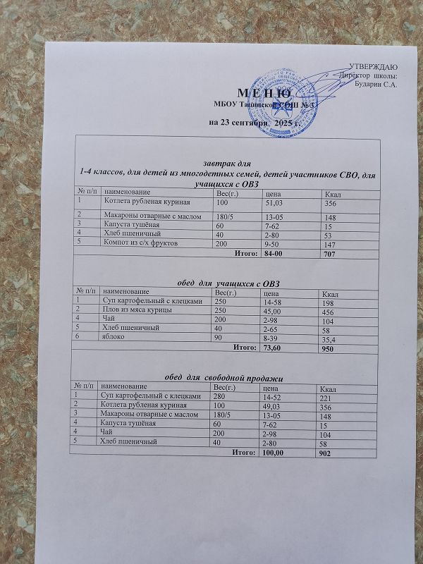 Сегодня 23.09.25 для учащихся 1-4-х классов предусмотрено следующее меню на завтрак: котлета рубленая куриная, макароны отварные с маслом, капуста тушеная, хлеб пшеничный, компот из с/х фруктов.