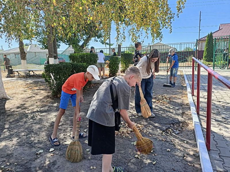 В преддверии начала нового учебного года в нашей школе совместно с участием ребят и педагогов был проведен субботник.