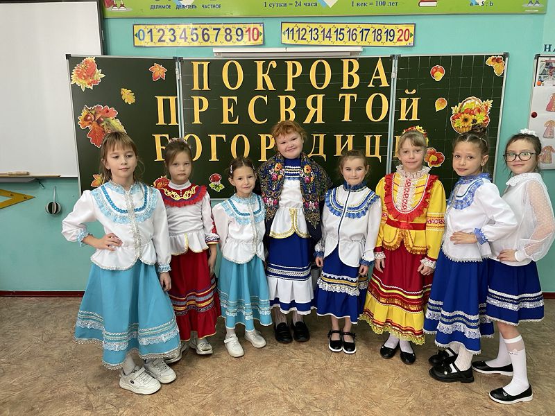 Считается, что праздник Покрова Пресвятой Богородицы пришел на Русь из Византии. Он отмечается каждый год 14 октября. Учащиеся 1 класса тоже отметили этот праздник. Ребята узнали об истории появления этого праздника и его традициях. Дети с большим удовольствием участвовали в конкурсах, отгадывали загадки, пели частушки. Было весело и интересно.