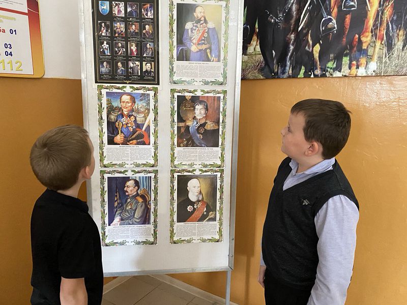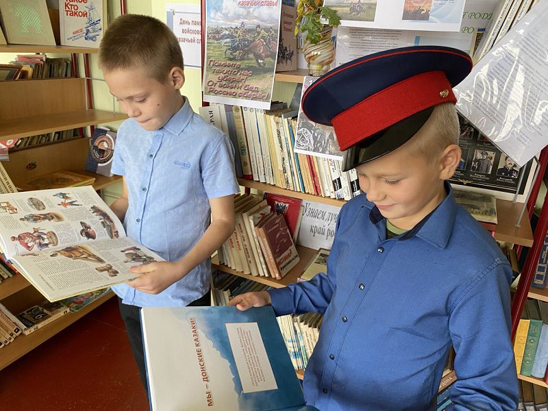 В нашей школе хранят историю казаков-предков, великих казачьих атаманах, изучают историю праздников, традиции. В рамках Дней казачьей воинской славы советник директора Агеева С.Ю. совместно с педагогом-библиотекарем Отрадновой К.Г. оформили фотовыставку портретов известных казаков-победителей разных эпох «Посмотри в глаза героя!» в холле школы и выставку книг в школьной библиотеке.