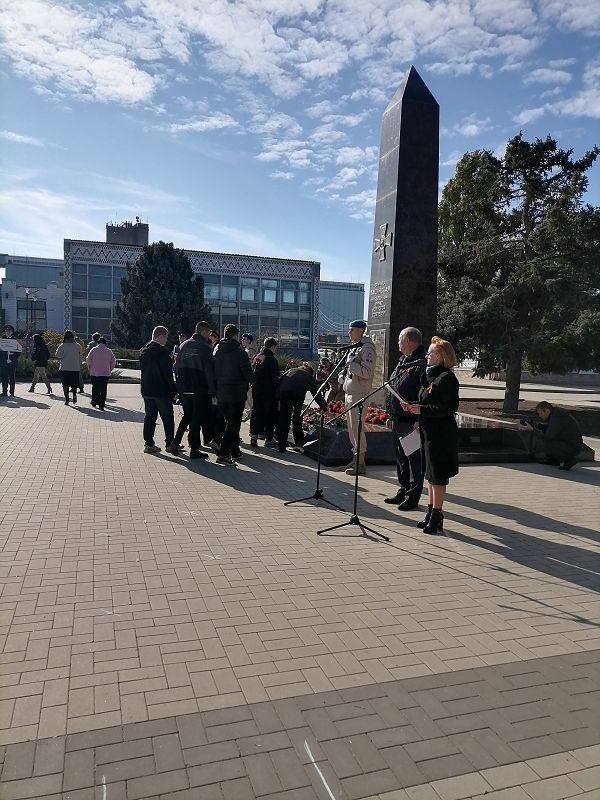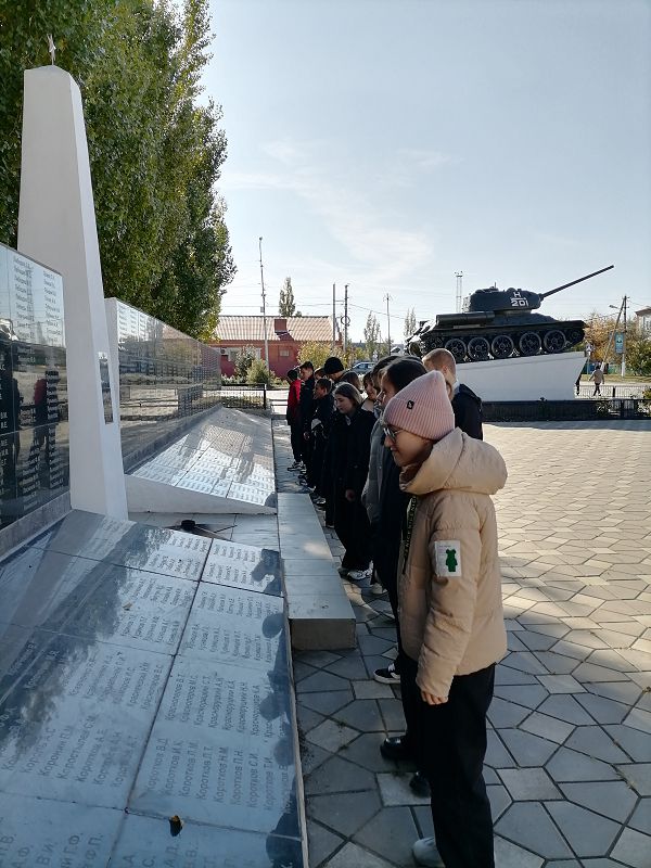 Учащиеся 8 класса нашей школы приняли участие в митинге-реквиеме на площади Борцов Революции у стелы «станица Тацинская населенный пункт воинской доблести».