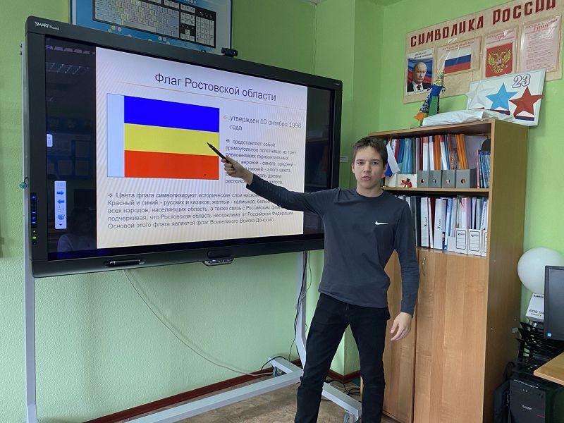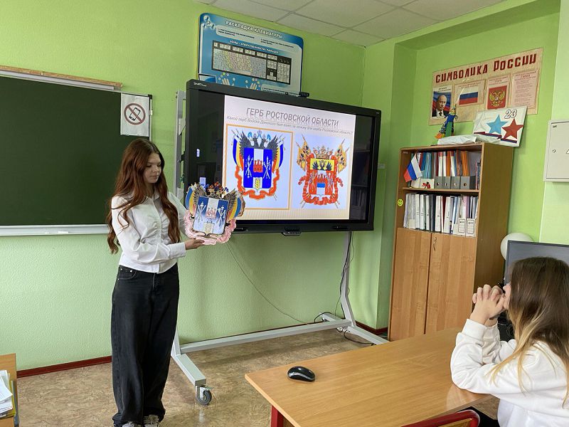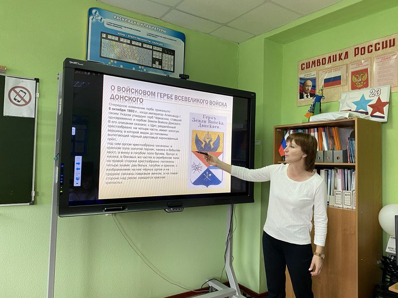 Советник директора по воспитанию Светлана Юрьевна Агеева совместно с классными руководителями организовали и провели классный час «Символы Ростовской области: прошлое и настоящее».