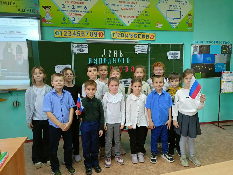 5 ноября в 1 классе прошел классный час посвященный Дню народного единства. Ребята узнали историю возникновения праздника (освобождение Москвы от польских интервентов в 1612 г) и его значение для страны. Так же познакомились с главными героями этого праздника купцом Кузьмой Мининым и князем Дмитрием Пожарским. Интересным фактом для детей стала информация о том, что покровительница этого праздника является икона Казанской Божьей Матери.
