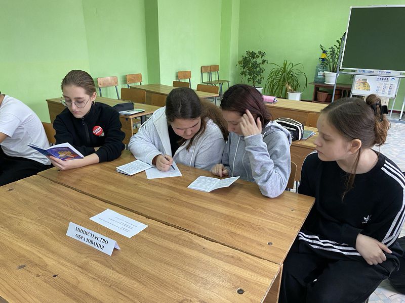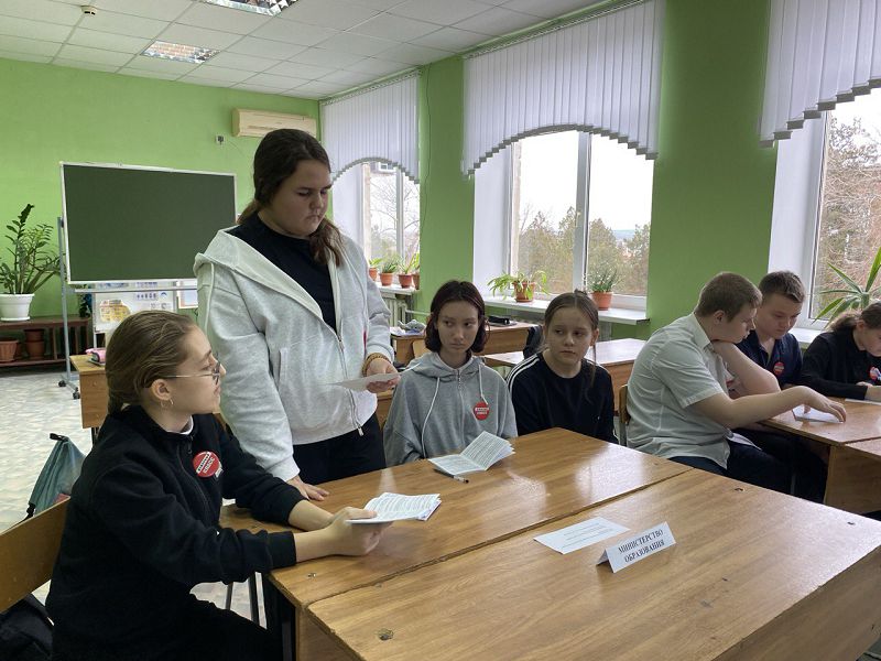 20 ноября советник директора по воспитанию Светлана Юрьевна Агеева совместно с учителем обществознания Татьяной Александровной Васильевой провели второе занятие из цикла «Я и государство» в рамках регионального проекта «Молодежь вправе». Ребята стали участниками правовой игры «Политик будущего», в ходе которой проанализировали проблемы в соответствии «своего министерства» и предложили пути решения, опираясь на законы нашего государства.