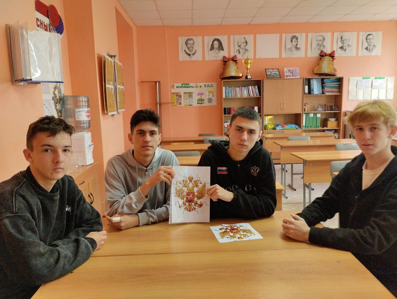 26 ноября в 11 классе прошел классный час в формате мозаика, посвященный Государственному гербу Российской Федерации. Ребята дополнили картинку необходимыми символами и проговорили о них, где они расположены и что они обозначают.
