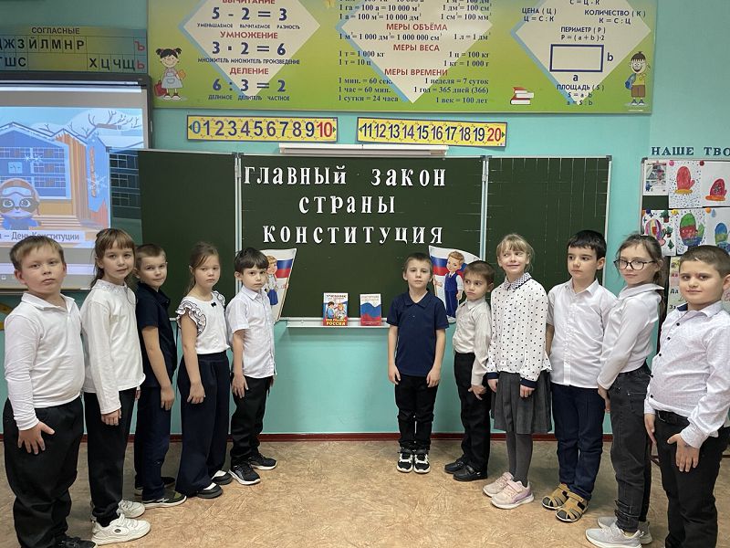 В 1 классе прошел классный час «Учим правила страны!», посвященный Дню Конституции. Ребята познакомились с понятием «Конституция». Посмотрели короткие мультфильмы о правах и узнали, что означают права на имя, дом, учебу и отдых. Дети поняли, что у них есть не только права, но и обязанности, которые они должны выполнять.