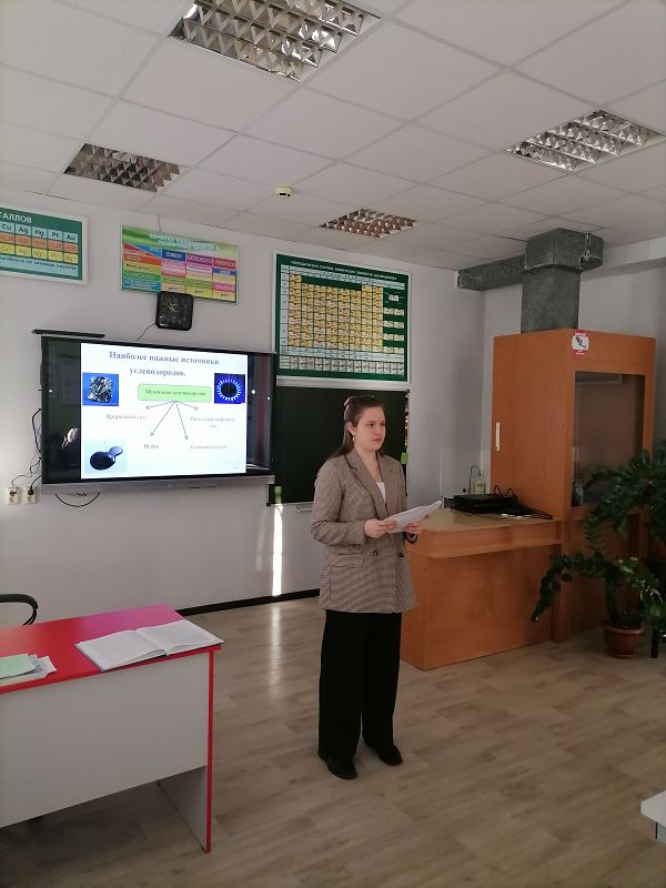 Ребята с энтузиазмом подготовили свои сообщения, поделившись с одноклассниками самыми интересными и неожиданными фактами о том, откуда мы получаем эти важнейшие для нашей цивилизации вещества. Они рассказали о том, как миллионы лет назад под воздействием колоссального давления и температуры из останков древних организмов образовались нефть, природный газ и уголь – настоящие кладовые углеводородов.