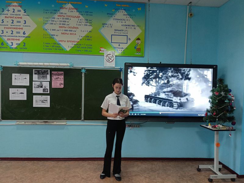 В 4 б классе педагогом-библиотекарем Отрадновой К.Г был проведен библиотечный урок «Танки против самолетов». Ребята узнали о рейде 24-го танкового корпуса под командованием генерал-майора Василия Баданова на станицу Тацинскую, который стал одной из самых ярких страниц в истории Сталинградской битвы.