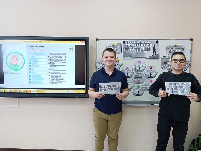 13.01.2026 г в 6 и 8 классах, в рамках «Недели профориентации» и проекта «Билет в будущее», состоялись занятия «Мое будущее». Под руководством педагога-психолога Омельченко А.Г. ребята проанализировали этапы выбора будущей профессии , обсудили результаты диагностики «Мои интересы»- как они связаны с профилями обучения и профессиональными средами, выяснили , как результаты диагностики могут помочь с выбором профессии.