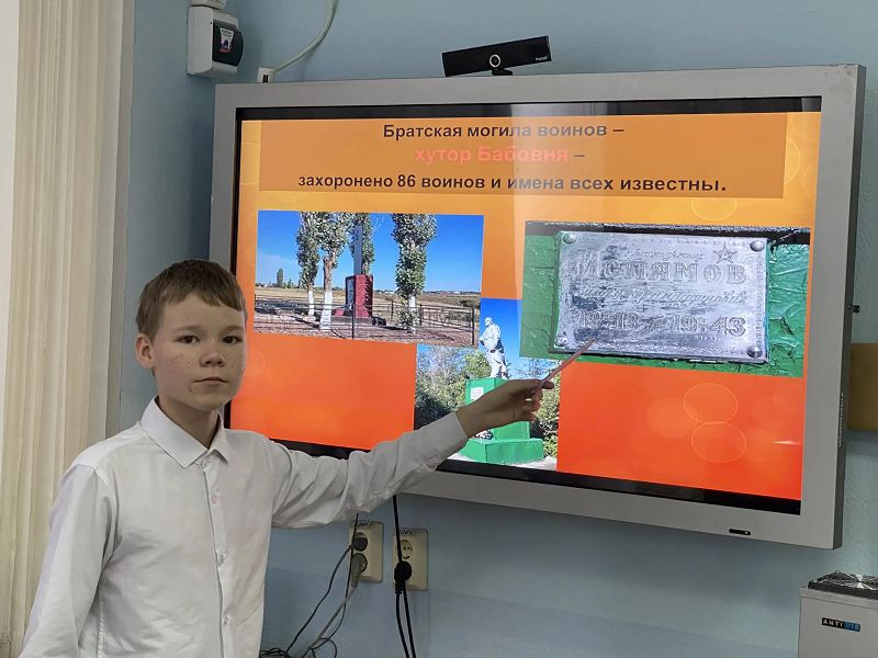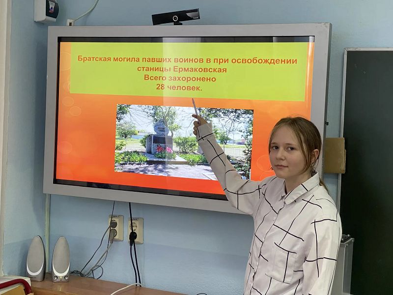 Ученики посмотрели презентацию «Памятники и братские могилы Тацинского района», прочитали стихотворения и почтили минутой молчания всех павших героев Великой Отечественной войны.