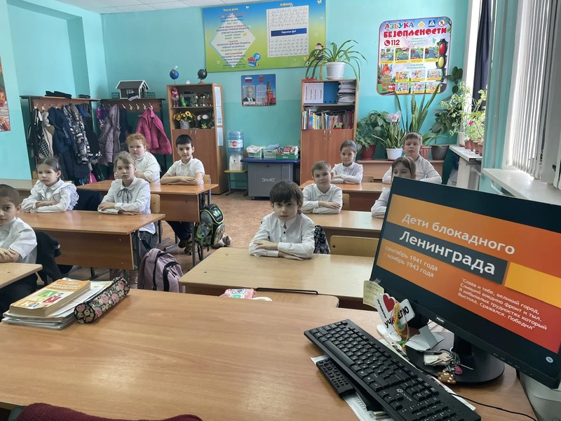 26 января в 1 классе был проведен классный час на тему «Блокадный Ленинград». Татьяна Сергеевна Литвинец рассказала ребятам о «Дороге жизни» через Ладожское озеро, показала маленький кусочек хлеба, который являлся для ленинградцев единственным источником жизни. Учащиеся узнали, что даже не смотря на голод и холод ленинградцы не унывали, дети продолжали учиться в школе.