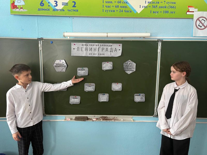 27 января - День полного освобождения Ленинграда от фашистской блокады. Эта дата священна для всех жителей станицы и для всех россиян. В память о событиях самой кровопролитной блокаде в истории человечества в 4 «б» классе (классный руководитель Женова К.А.) прошел час памяти «Блокада Ленинграда. Суровые факты».