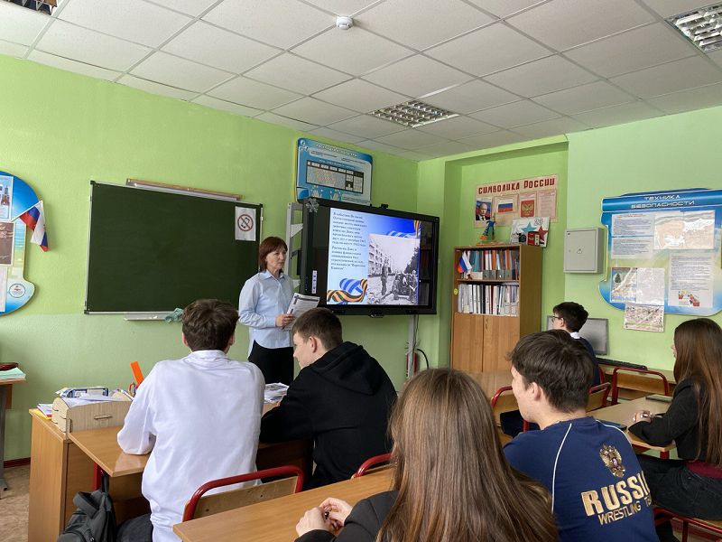 9 февраля советник директора по воспитанию Светлана Агеева провела с учащимися 9 классов урок памяти «Бои за Ростов».