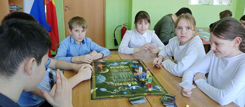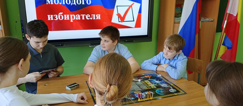 В рамках проведения месячника молодого избирателя сегодня семиклассники стали участниками настольной образовательной игры «Межгалактические выборы». Цель игры – набрать наибольшее количество рейтинговых очков и победить на выборах президента галактики Демократус.