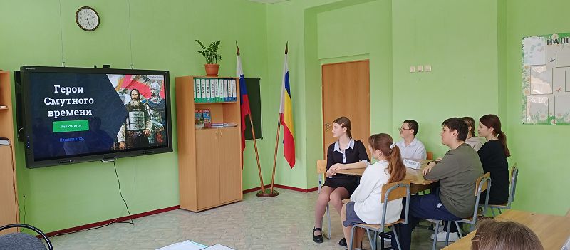В рамках военно-патриотического месячника учитель истории Тюленева Оксана Владимировна провела интерактивную игру с семиклассниками «Герои Отечества». В ходе игры дети закрепили исторические знания по теме «Смута в России».