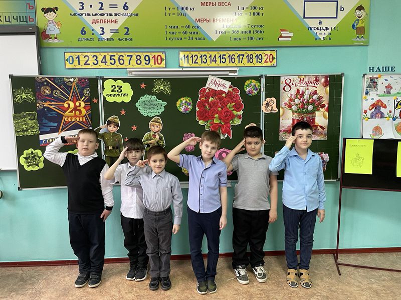 5 марта в 1 классе прошёл совместный праздник 23 февраля и 8 марта. Во время мероприятия дети узнали об истории возникновения этих праздников. Ребята участвовали в разных конкурсах, а в конце праздника девочки поздравили мальчиков с Днем защитника Отечества, мальчики — девочек с 8 марта.