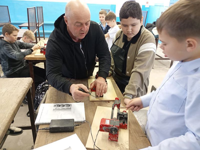 В 5 классе Чос Алексей Алексеевич провел открытый урок труда по теме: «Обработка древесины с использованием электрифицированного инструмента». Практическая часть урока была организована с использованием станков - конструкторов Унимат - 1, которые содержат в себе шесть видов станков по деревообработке и металлообработке.