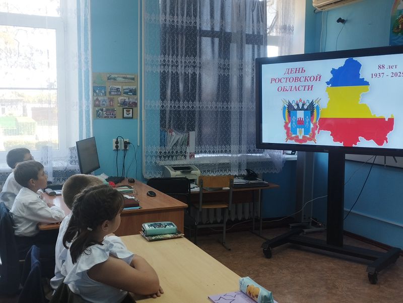 15 сентября в 4 «А» классе прошел классный час, посвященный 88- летию Ростовской области. Знать историю родного края, гордиться знаменитыми людьми, чтить обычаи и традиции должен каждый. Вот и сегодня учащиеся познакомились со знаменитыми людьми такими как: М.А. Шолохов, А.П. Чехов, Ф. Раневская. Повторили символику, узнали с какими областями и краями граничит наша область, чем богата наша земля.
