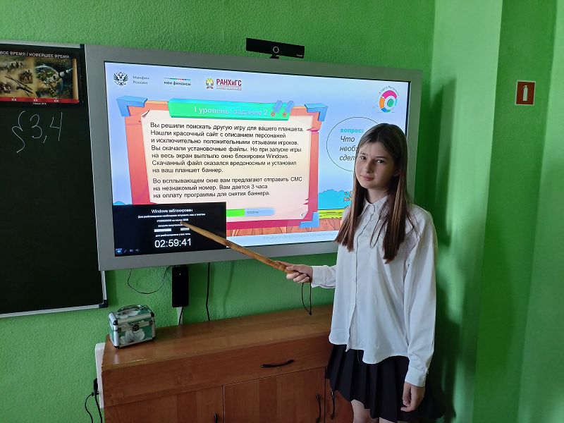 В рамках проекта «Мои финансы» школа организует разнообразные мероприятия для повышения уровня финансовой грамотности учащихся. Для учащихся 5-6 классов на внеурочных занятиях проведена беседа «Вселенная безопасности в компьютерных играх». Учащиеся прошли путь от Новичка до Хранителя безопасности в играх. Дети обсудили различные виды мошенничества в компьютерных играх и разработали правила безопасного поведения в интернете.