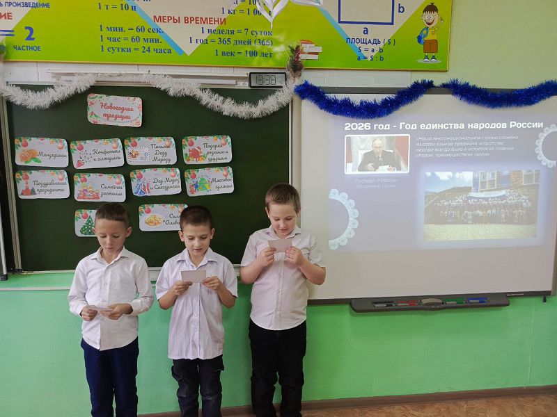 Заключительное в 2025 году занятие из цикла «Разговоры о важном» было посвящено приближающимся новогодним праздникам и зимним каникулам. Цель урока — развитие у школьников восприятия милосердия и добрых дел как к одной из главных праздничных традиций, объединяющих общество. Педагоги поговорили с учащимися о новогодних традициях народов России как части культурного наследия страны.